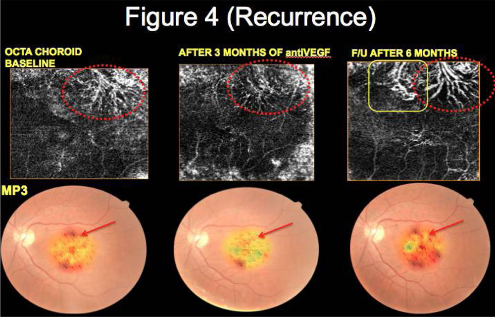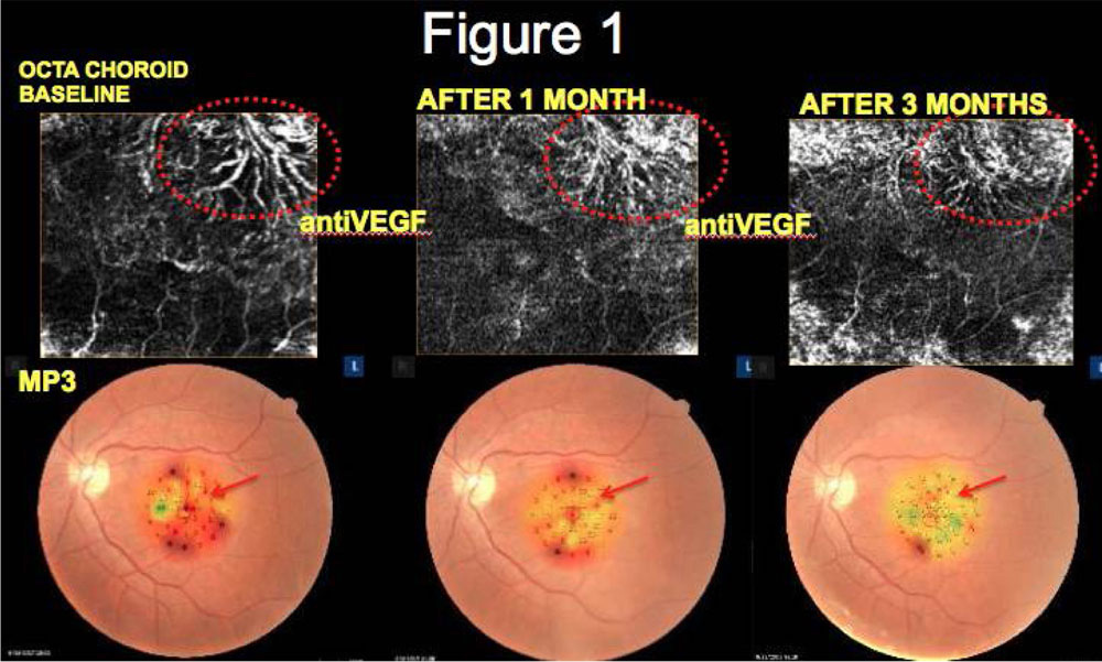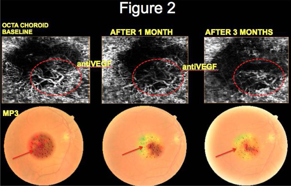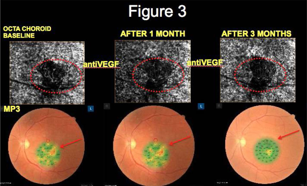 MP-3 introduced in 2015, offers certain advantages over MP-1 in terms of luminance and ability to measure a wider retinal sensitivity threshold deploying less energy in a quick time. OCTA on the other hand is the only non-invasive tool that provides 3-D analysis of CNVM and provides structural information of neovascular network. Overlaying the details of OCTA and MP-3 with the help of novel software provided by Nidek provides us a new insight to the understanding of disease process that was never explored previously.
